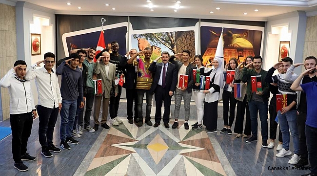 Vali Orhan Tavlı, Çanakkale Onsekiz Mart Üniversitesi Uluslararası Öğrenci Derneği Başkanı Ahmet Arıcan ve öğrencilerle bir süre görüşerek sohbet etti. Görüşmelerin ardından Vali Orhan Tavlı, Çanakkale Onsekiz Mart Üniversitesi Uluslararası Öğrenci Derneği Başkanı Ahmet Arıcan, Filistin, Suriye, Afganistan, Arnavutluk, Kuzey Makedonya, Mali, Türkmenistan, Özbekistan, Kırgızistan, Kazakistan, Rusya ve Yemen’den gelen öğrenciler, Kahraman Mehmetçiğimize Asker Selamı gönderdiler. Bu ülkede eğitim alıp dostluklarını geliştirerek geleceğe adım atacak olan öğrencilere Türkiye’nin kültür elçileri olacaklarını ifade eden Vali Orhan Tavlı, Barış Pınarı Harekatı’na katılan Kahraman Mehmetçiğimize destek için ÇOMÜ’de okuyan uluslararası öğrencilerin anlamlı ziyaretinden duyduğu memnuniyeti dile getirerek teşekkür etti.