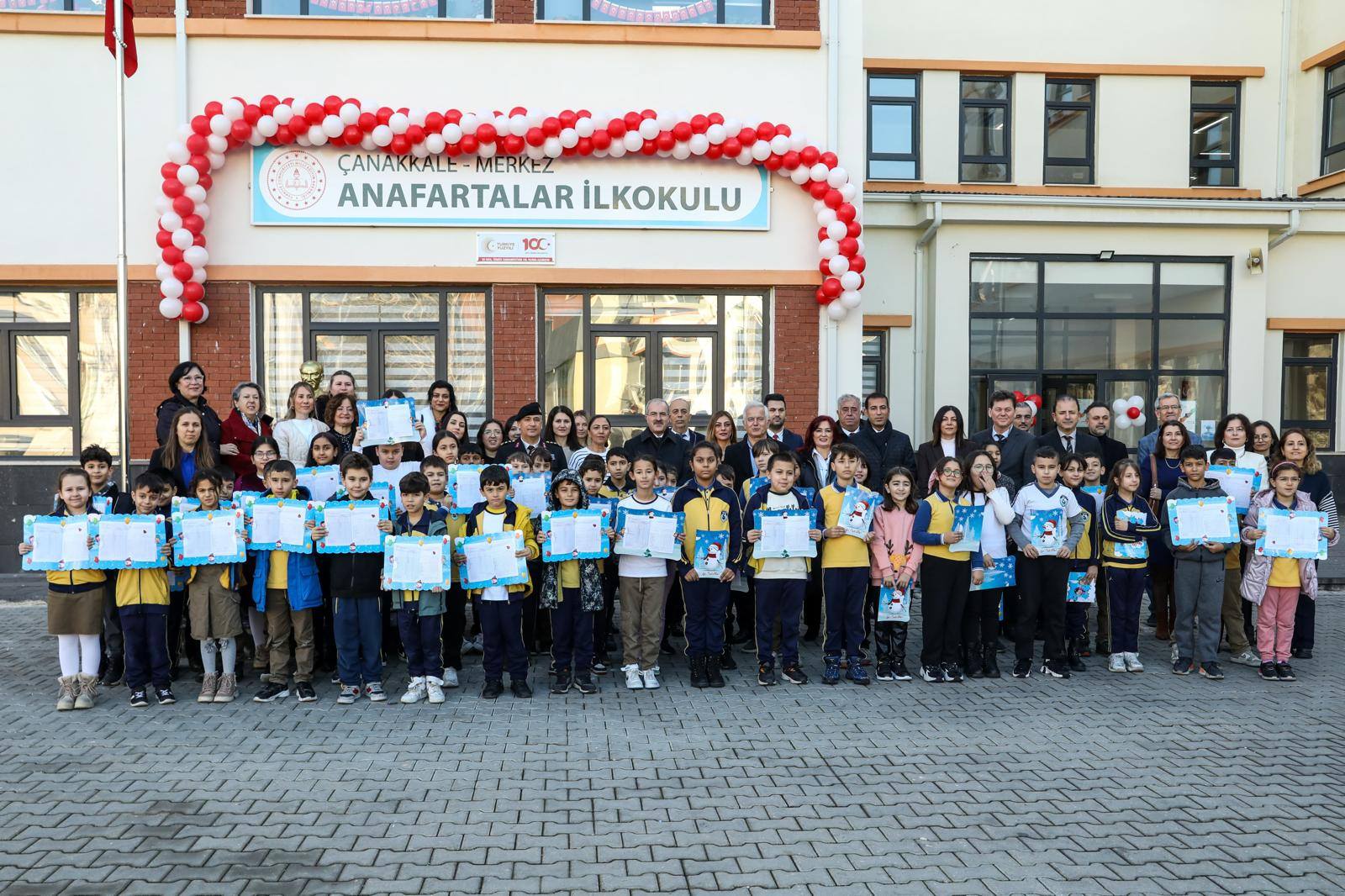 Çanakkale Valisi Doç. Dr. Ömer Toraman, Anafartalar İlkokulu’nda düzenlenen karne dağıtım programına katılarak öğrencilerin karne sevincine ortak oldu. Öğrencilerin heyecanını paylaşan Vali Ömer Toraman, öğrencilere huzurlu ve keyifli bir tatil dileyerek başarılarının devamını temenni etti.