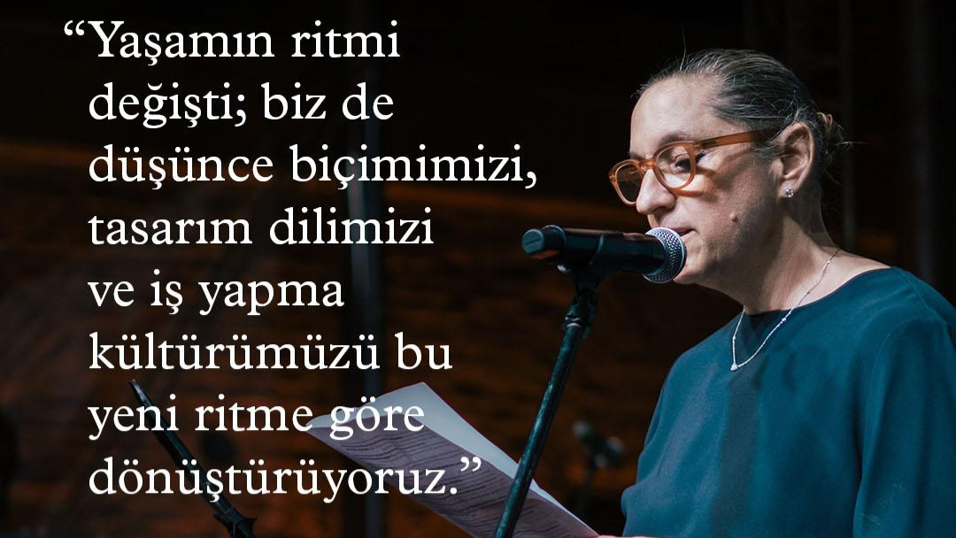 Gecenin açılış konuşmasını yapan Kale Grubu Yönetim Kurulu Başkanı ve CEO’su Zeynep Bodur Okyay, Kalebodur’un yalnızca bir ürün markası olmanın ötesine geçerek bir tasarım ekosistemine dönüştüğünü vurguladı. Okyay, konuşmasında şu ifadelere yer verdi: “Bugün burada, 68 yılın birikimiyle yepyeni bir dönemi başlatıyoruz. Kalebodur, sadece bir ürün markası olmanın ötesine geçerek, tasarımı ve sürdürülebilirliği bir arada sunan, ortak akıl ve saygılı iş birlikleriyle şekillenen bir tasarım ekosistemine dönüşüyor. Bizim için seramik, bir malzeme olmanın çok ötesinde; insanla ve yaşamla kurduğumuz güçlü bir bağ. Yeni dönemle birlikte sadelikle derinliği, gelenekle yeniliği, estetikle işlevselliği buluşturuyoruz.”