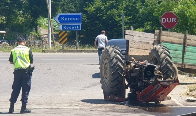 Sakarya'nın Karasu ilçesinde otomobil ile çarpışan traktör iki ayrılıp, takla attı. Meydana gelen kazada traktör sürücüsü yaralandı.