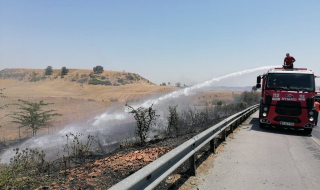 Yoldan geçen araçtan atılan yanıcı bir maddenin neden olduğu üzerinde durulan yangın, büyümeden söndürüldü.