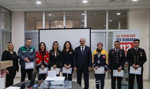 112 Acil Çağrı Merkezi’nde görev yapan personelle bir araya gelen Vali Doç. Dr. Ömer Toraman, 2024 yılında başarılı çalışmalar yürüten personele başarı belgesi takdim etti. Vali Toraman, 112 Acil Çağrı Merkezi personelinin gününü kutlayarak görevlerinde kolaylıklar diledi.