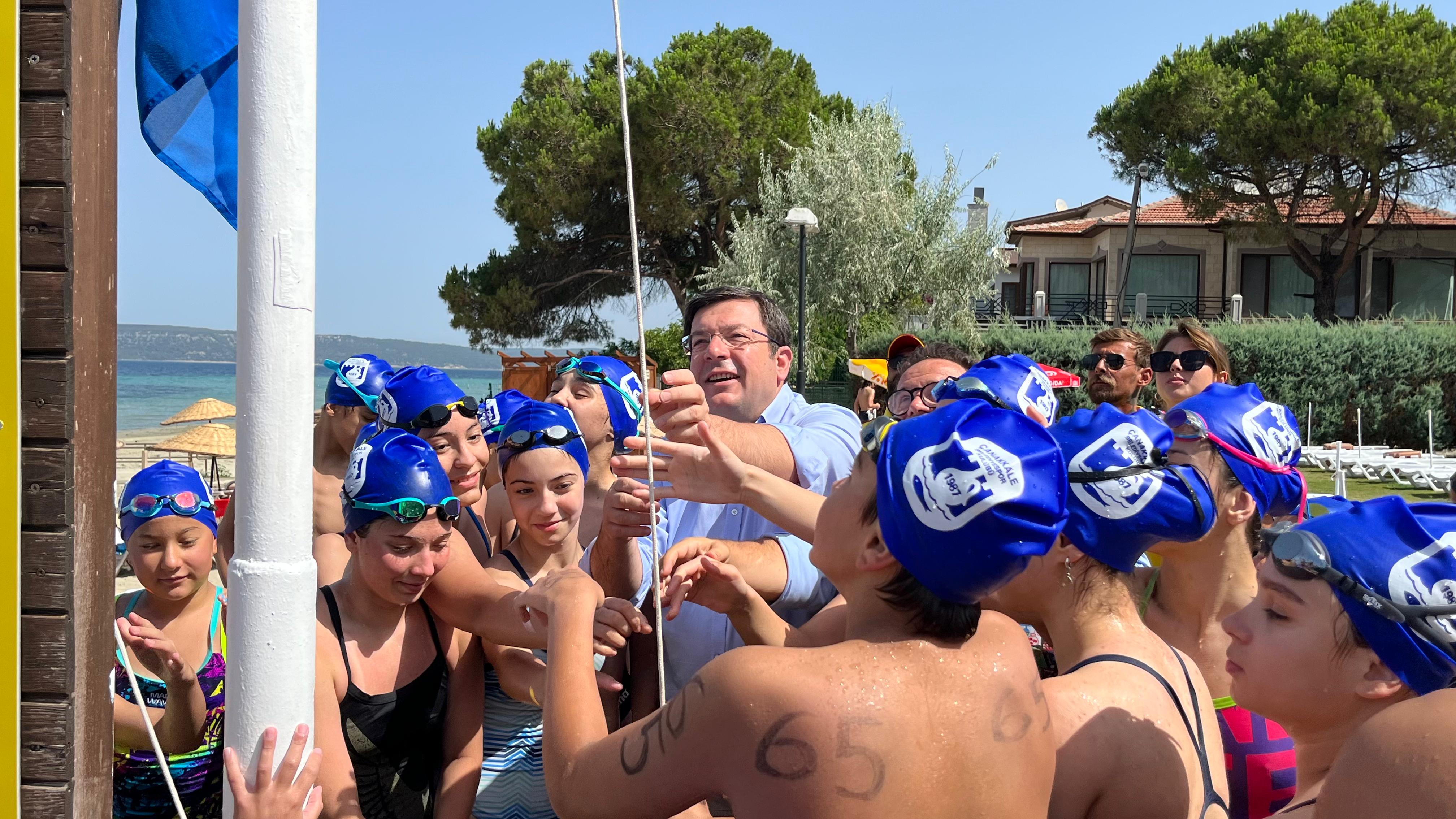 Konuşmaların ardından Türkiye Çevre Eğitim Vakfı (TÜRÇEV) Kuzey Ege İlleri Koordinatör Vekili Yetkin Karabinalı, Belediye Başkanı Muharrem Erkek'e Mavi Bayrak sertifikasını takdim ederken, sezon boyunca dalgalanacak olan Mavi Bayrak da göndere çekildi. Mavi Bayrak, 2 Temmuz- 31 Ağustos 2024 tarihleri arasında merkezdeki Barış Plajı ve Mega Beach Belediye Halk Plajı ile Güzelyalı ve Dardanos Belediye Halk Plajlarında dalgalanacak.
