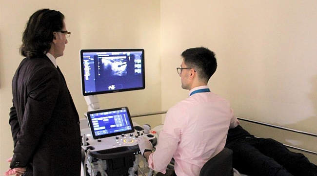 ÇOMÜ Rektörü Prof. Dr. Sedat Murat, Rektör Yardımcısı Prof. Dr. Süha Özden, Başhekim Prof. Dr. Okhan Akdur, Radyoloji Anabilim Dalı Başkanı Prof. Dr. İbrahim Öztoprak, Hastane Başmüdürü Serap Yontar ve Genel Sekreter Yardımcısı Vekili Ayhan Monus, Radyoloji birimini ziyaret ederek incelemelerde bulundu. Rektör Prof. Dr. Sedat Murat'a bilgi veren Başhekim Prof. Dr. Okhan Akdur, hastaneye başvuran hasta sayısının her geçen gün arttığını, bazı ünitelerde ciddi hasta yoğunluğunun görüldüğünü belirterek, sağlık hizmeti taleplerini karşılamaya yönelik sürekli bir çalışma içerisinde olduklarını söyledi. Prof. Dr. Okhan Akdur, daha iyi ve kaliteli hizmet verebilmek adına hastanede yaklaşık 10 yıldır kullanımda olan tıbbi cihazların son teknoloji yeni cihazların alımı ile birlikte yenilenme sürecine girildiğini, Radyoloji birimine alınan bu iki ileri düzey ultrasonografi cihazının sağlık hizmetine ciddi katkı sunacağını ifade etti.