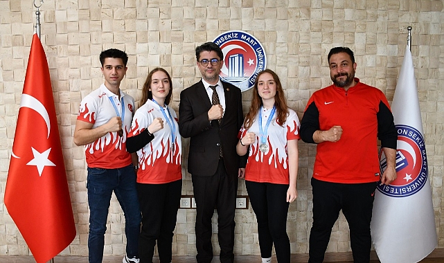 Türkiye Wushu Şampiyonasında Çanakkale Onsekiz Mart Üniversitesi (ÇOMÜ) Spor Bilimleri Fakültesi öğrencilerinden Ayşe Can “Light Sanda 56 kg” kategorisinde bronz madalya, Süheyla Altın “Light Sanda 60 kg” kategorisinde gümüş madalya, Süreyya Altın “Light Sanda 65 kg” kategorisinde bronz madalya, Sağlık Bilimleri Fakültesi öğrencilerinden Muhammed Emre Uysal “Light Sanda 70 kg” kategorisinde bronz madalya kazandı. Türkiye şampiyonasından başarıyla dönen sporcular ÇOMÜ Rektörü Prof. Dr. R. Cüneyt Erenoğlu’nu ve Rektör Yardımcısı Prof. Dr. Dinçay Köksal’I makamında ziyaret etti. Ziyarette Spor Birliği Koordinatörü Öğr. Gör. Dr. Deniz Ünver hazır bulundu.