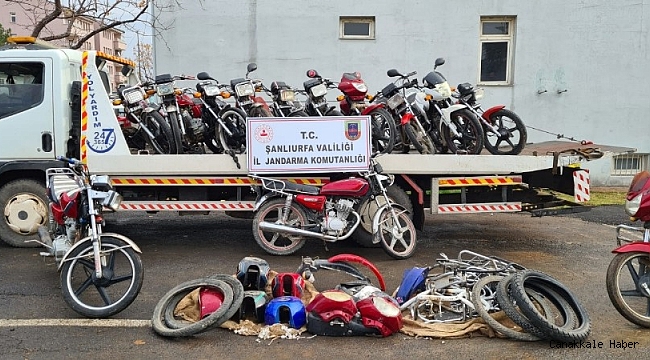 Edinilen bilgiye göre, Viranşehir Cumhuriyet Başsavcılığı koordinesinde, İl Jandarma Komutanlığı Kaçakçılık ve Organize Suçlarla Mücadele (KOM) ekipleri, örgütlü olarak yapılan motosiklet hırsızlığıyla ilgili soruşturma başlattı. Kent genelinde çalınan motosikletlerin ilçe kırsalındaki depolara getirildiğini ve buradan hem parçalara ayrılarak hem de şasi numaraları silinerek satıldığını belirleyen KOM ekipleri, 6 depoya eş zamanlı operasyon düzenledi. Adresteki aramalarda, çalıntı 13 motosiklet ile çok sayıda motosiklet parçası, bir miktar esrar ve uyuşturucu hap ile terör örgütü PKK simgesi bulunan bez parçası ele geçirildi.
