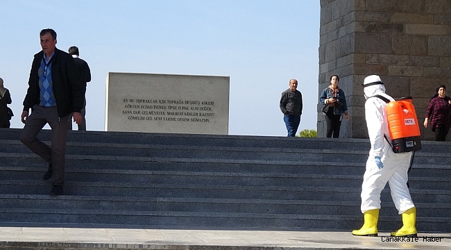 Çanakkale’de 18 Mart Şehitleri Anma Günü ve Çanakkale Deniz Zaferi'nin 105'inci yıl dönümü etkinlikleri kapsamında Gelibolu Yarımadası'ndaki Şehitler Abidesi'nde düzenlenecek tören öncesi, bölgede koronavirüse karşı önlem amaçlı dezenfekte çalışması gerçekleştirildi. Gelibolu Yarımadası'ndaki Şehitler Abidesi'nde yapılan dezenfekte çalışmasının, tören gününe kadar özel kıyafet giyen ekipler tarafından her gün yapılacağı bildirildi. Tören günü ise alana gelenler, termal kameradan geçirilecek ve ayrıca el antiseptikleri dağıtılacak. Tarihi Yarımada'daki şehitlikler ile müzelerde de tören öncesi ve sonrasında dezenfekte çalışmalarına devam edilecek.