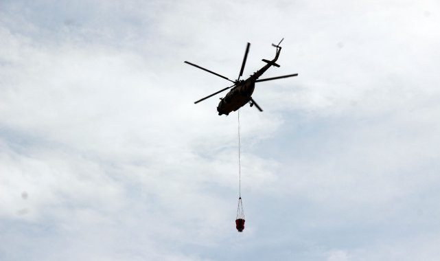 Skorsky helikopterlerin alevlere karşı mücadelesi göz doldurdu