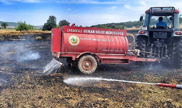 Çanakkale Orman Bölge Müdürlüğü’nce dağıtılan su tankerleri, buğday tarlasında çıkan yangına müdahale etti. Çakırlı-Karagür köyleri arasındaki buğday tarlalarında çıkan yangın söndürüldü.