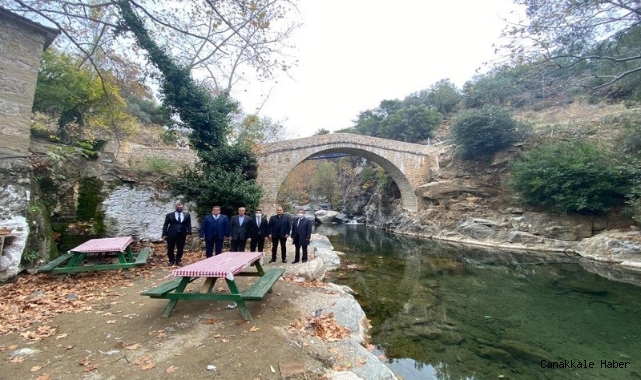 Vali İlhami Aktaş, Ayvacık ilçesi Bahçedere köyünde Mıhlı Çayı üzerinde bulunan tarihi Mıhlı Köprüsü’nü inceledi.