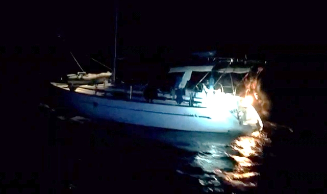 Ayvacık ilçesi açıklarında yelkenli tekne içerisinde 56 düzensiz göçmen ve 3 göçmen kaçakçısı şüphelisi yakalandı.