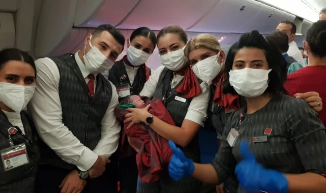 Doktor olmayınca, kabin ekipleri doğumu yaptırdı