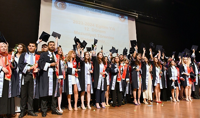 Saygı duruşu ve İstiklal Marşı ile başlayan Tören, müzik dinletisinin ardından 12. Dönem Birincisi Dr. Atakan Kutay Özdemir, Tıp Fakültesi Dekanı Prof. Dr. Muammer Karaayvaz ve ardından Çanakkale Onsekiz Mart Üniversitesi Rektör Vekili Prof. Dr. Evren Karayel Gökkaya’nın konuşmaları ile devam etti. Dönem birincisi Dr. Atakan Kutay Özdemir’ in mezuniyet kütüğüne plaket çakması ve dereceye giren öğrencilere hediye ve plaket takdiminin ardından mezun olan öğrencilere diplomaları takdim edildi. Tören Prof. Dr. Mehmet Yılmaz Akgün’ün Hekimlik andının okutulması ve kep atma seremonisi ile sona erdi.