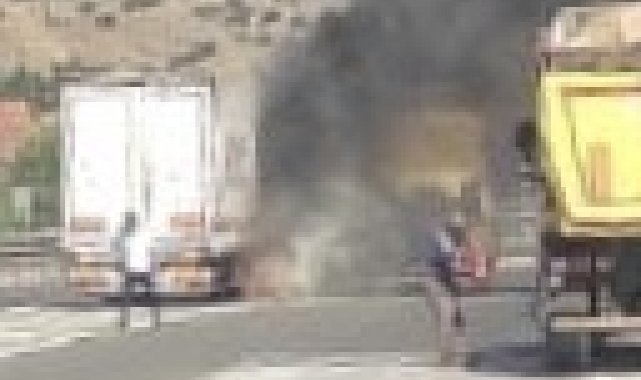 Tır dorsesinde çıkan yangın kısa sürede söndürüldü