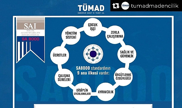 Çocuk işçiliğinin önlenmesi, zorla ve zorunlu çalıştırma, iş sağlığı ve güvenliği, örgütlenme özgürlüğü, ücretler, yönetim sistemleri ve ayrımcılığın önlenmesi gibi konularda uluslararası standartlara uyum sağlayan şirketlere verilen SA8000 Sertifikası'nı almaya hak kazanan TÜMAD, aynı zamanda, dünyada "Altın Madenciliği" alanında bu belgeye sahip tek kuruluş oldu.