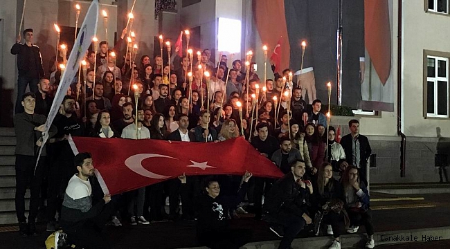 yüksek sesle Gençliğe Hitabe’yi okuyan ÇOMÜ Halkla İlişkiler Topluluğu