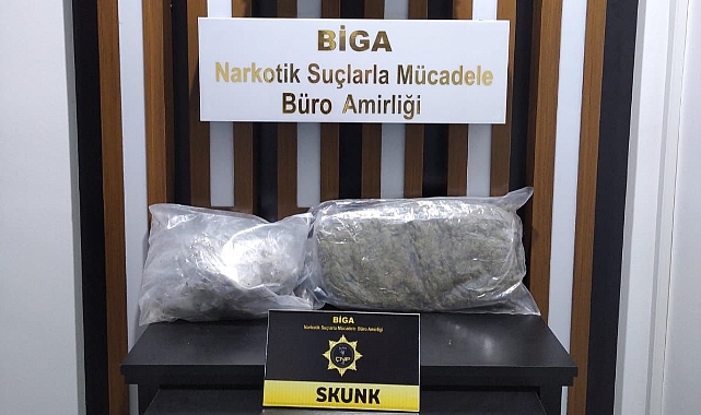 Çanakkale İl Emniyet Müdürlüğü ile Biga İlçe Emniyet Müdürlüğü Narkotik Suçlarla Mücadele Büro Amirliği ekipleri tarafından yapılan çalışmada, 3 şüphelinin üzerlerinde ve bulundukları araçta arama yapılmıştı. Aramada 1 kilo 682 gram skunk ele geçirilirken, gözaltına alınan şüpheliler hakkında ‘uyuşturucu madde ticareti yapmak ve uyuşturucu madde kullanmak' suçlarından işlem yapılmıştı.