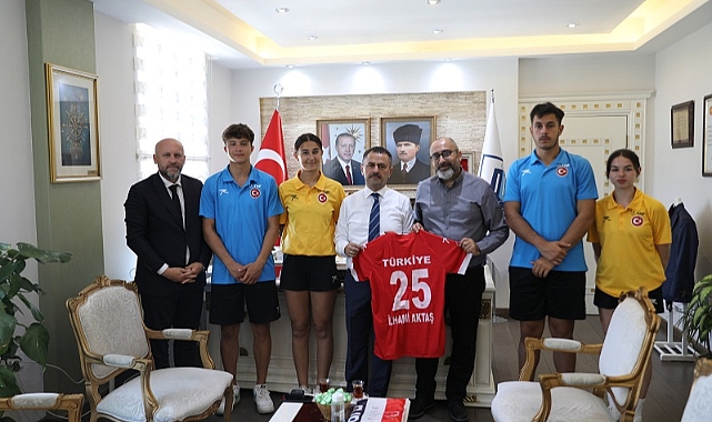Türkiye Hentbol Federasyonu Yönetim Kurulu Üyesi Erdem Göktürk, Çanakkale Hentbol İl Temsilcisi Doç. Dr. Mustafa Deniz Dindar, U17 Plaj Hentbol Milli Takımı sporcuları Hatice Karataş, Naz Yardım, Feridun Çetin ve Okan Çakmak, Vali İlhami Aktaş’ı ziyaret etti.