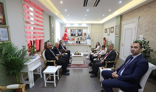 23 Nisan Ulusal Egemenlik ve Çocuk Bayramı’nın 104. yıl dönümü dolayısıyla Barbaros Hayrettin Paşa İlkokulu öğrencileri Eda Nur Eren, Beraat Kaan Kahve ve Uras Can Sokullu, Vali İlhami Aktaş’ı makamında ziyaret etti.