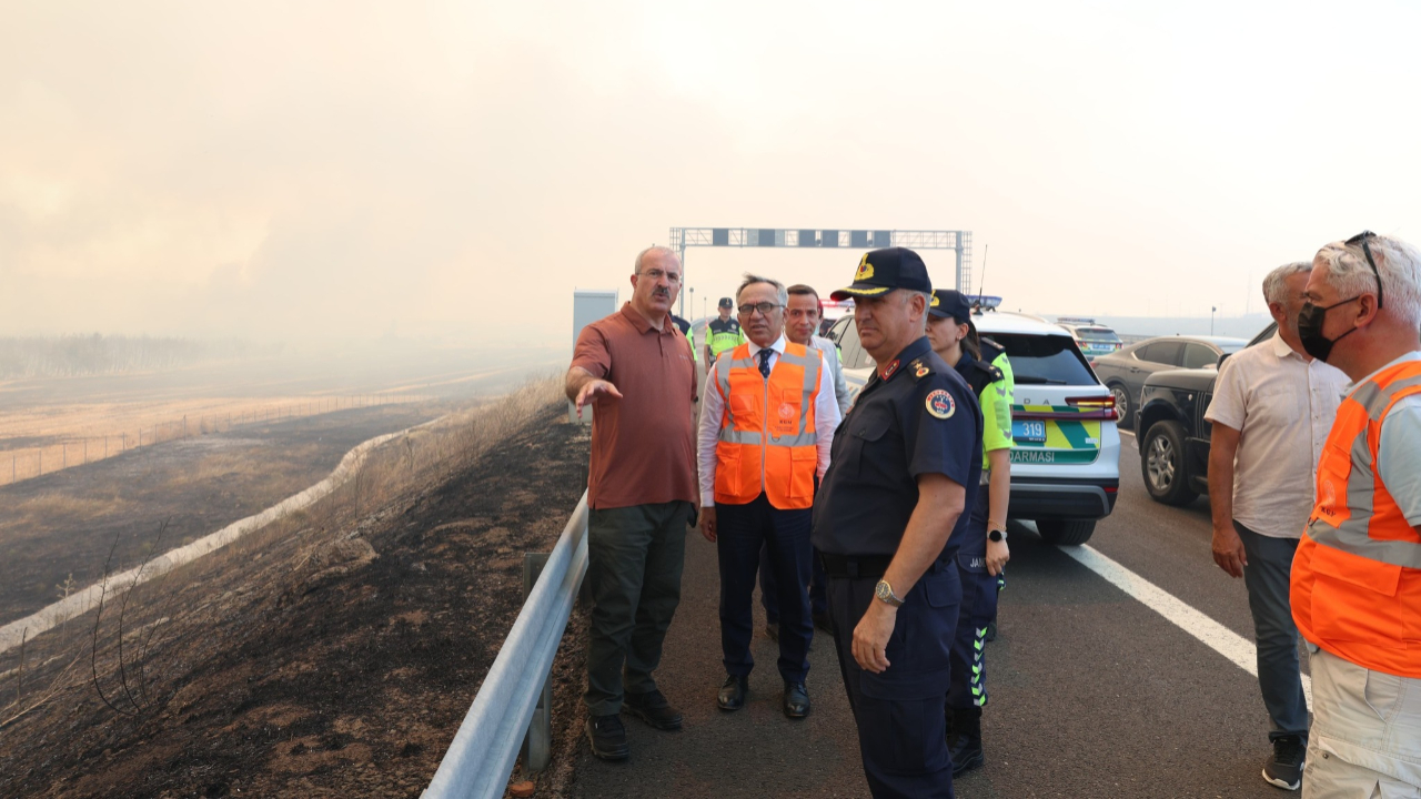 Vali Doç. Dr. Ömer Toraman, Fahrettin Altay Kışlası ile Malkara Otoyolu güzergâhında yürütülen söndürme faaliyetlerini yerinde inceleyerek, çalışmalara ilişkin yetkililerden bilgi aldı.
