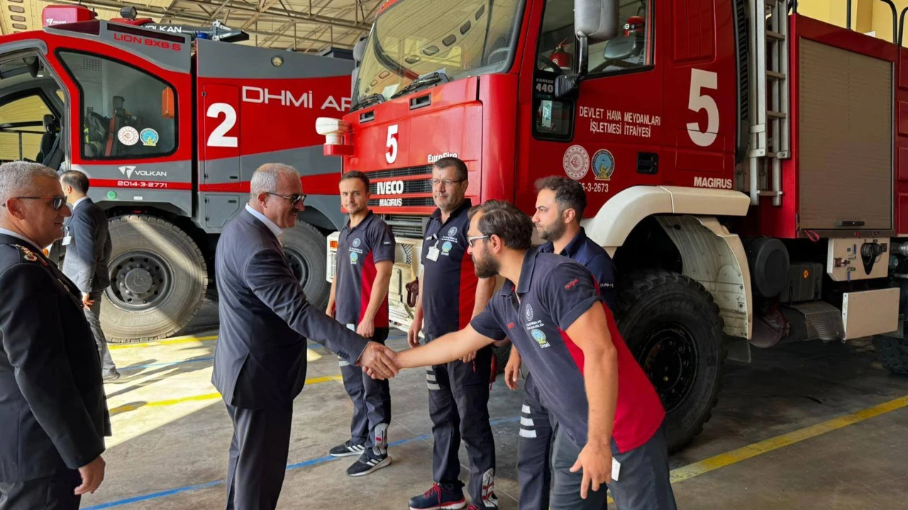 Vali Doç. Dr. Ömer Toraman, Çanakkale Havalimanı Devlet Hava Meydanları İşletmesi (DHMİ) Kurtarma ve Yangın İstasyonunu ziyaret ederek incelemelerde bulundu.