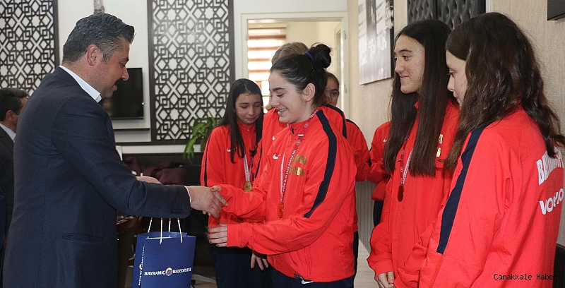 Bayramiç Belediye Başkanı Mert Uygun, Voleybol Yıldız Kızlar il birincisi olan Cumhuriyet Ortaokulu Voleybol Takımını, antrenörlerini ve destek veren eğitimcileri makamında ağırladı.
