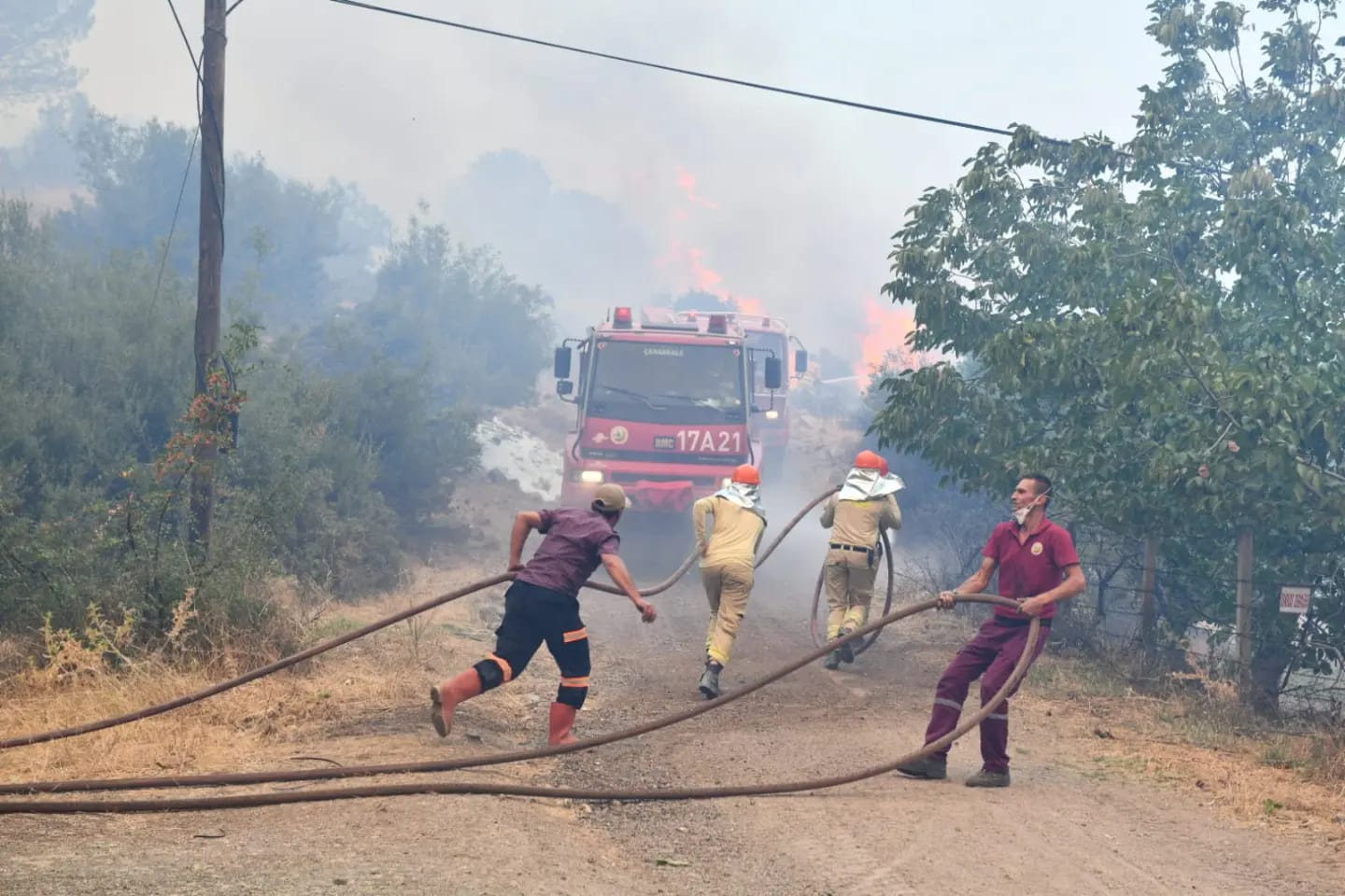 Çanakkale Belediyesi İtfaiye Müdürlüğü’ne bağlı ekiplerin yanı sıra çevre il ve ilçelerden gelen itfaiye ekipleri de yangının köylere ulaşmaması için canla başla mücadele ediyor. Ayrıca yangında 15 helikopter, 8 uçak, 80 arazöz, 7 dozer çalışıyor. Ayrıca orman bölgesinde devam eden yangının kuvvetli rüzgâr nedeniyle daha da büyümemesi için Orman Müdürlüğü’ne bağlı ekipler de tüm gücüyle mücadelelerini sürdürmekte.