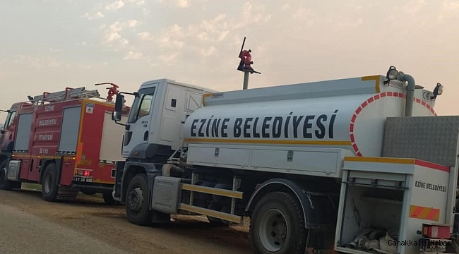 Ezine Belediyesi itfaiye ekipleri, Gelibolu ilçesindeki orman yangını söndürme çalışmalarına katıldı.