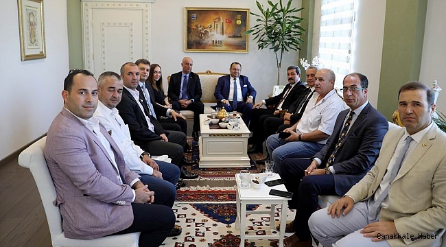 Vali Orhan Tavlı, Biga Ticaret ve Sanayi Odası Yönetim Kurulu Başkanı Şadan Doğan, Yönetim Kurulu Başkan Yardımcıları Sedat Çakır, Hüseyin Şahin, Meclis Başkanı Melih Akyıl, Meclis Başkan Yardımcıları Jale Kırbaş, Ümit Alşan, Yönetim Kurulu Üyeleri Hakan Akın, Hüseyin Erdoğan, Cüneyt Oflaz, Tevfik Başarır ve Biga Ticaret ve Sanayi Odası Genel Sekreteri Mustafa Mutlu’yu makamında kabul etti. Vali Orhan Tavlı, Biga Ticaret ve Sanayi Odası Başkanı Şadan Doğan ve Yönetim Kurulu üyeleriyle bir süre görüşerek sohbet etti. Ziyarette, Biga Ticaret ve Sanayi Odası Başkanı Şadan Doğan ve Yönetim Kurulu üyeleri 4 - 6 Ekim tarihleri arasından gerçekleştirilecek olan Biga Tarım ve Hayvancılık Fuarıyla ilgili Vali Orhan Tavlı’ya bilgi verdiler. 1915 Çanakkale Köprüsü, 2017 yılında kurulan ve altyapı çalışmaları hızla devam eden Ezine Gıda İhtisas Organize Sanayi Bölgesindeki çalışmaların ve Çanakkale’ye yapılan diğer yatırımların ele alındığı ziyarette, 1915 Çanakkale Köprüsü ve Ezine Gıda İhtisas Organize Sanayi Bölgesi’nin Çanakkale’nin tarım sektörüne ve ekonomisine sağlayacağı katkılar ile Çanakkale’yi bölgenin yazılım ve teknoloji üssü haline getirecek olan Çanakkale TEKNOPARK üzerinde duruldu. Yapılan görüşmelerin ardından Vali Tavlı, ziyaretten duyduğu memnuniyeti dile getirerek teşekkür etti.