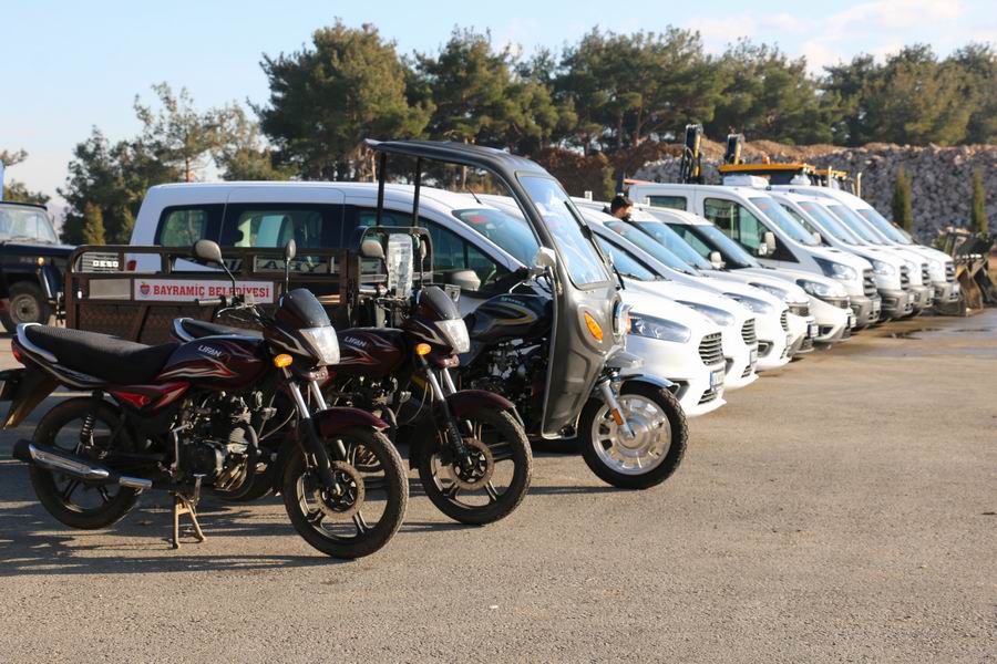 Bayramiç Belediyesi'nin hizmet filosuna kazandırılan kepçe, kamyon, otobüs, motosiklet, cenaze nakil ve hizmet araçları için kurban kesildi.